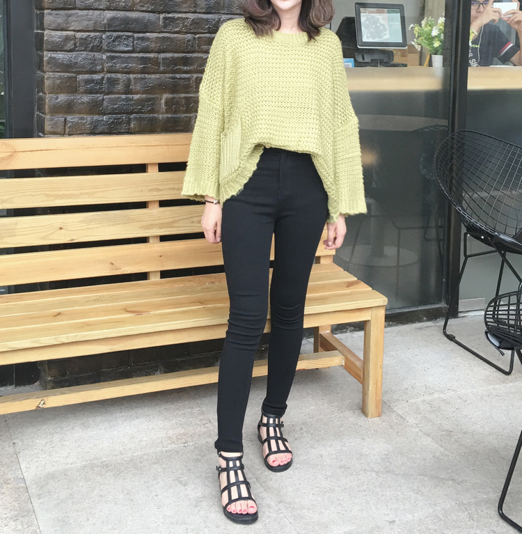/ 秋冬新款寬松破洞女裝薄款打底衫上衣韓版套頭蝙蝠長袖針織衫