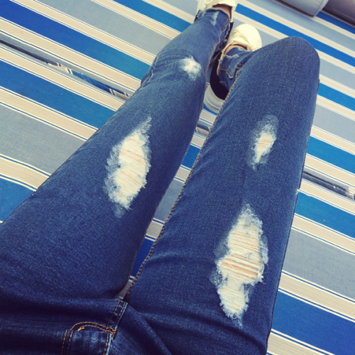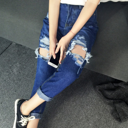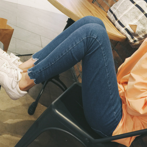 膝蓋破洞修身小腳褲牛仔褲 5008#