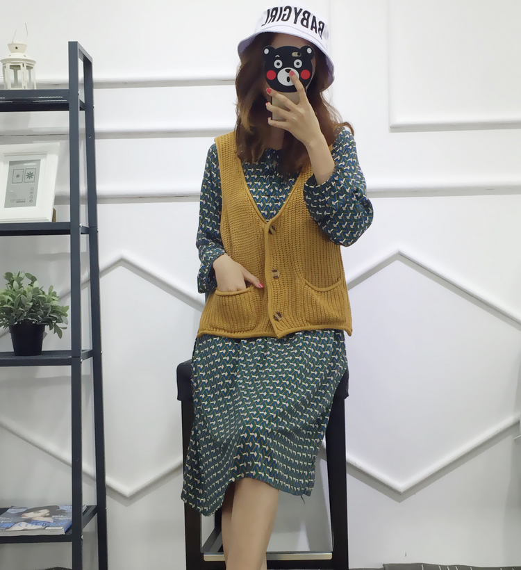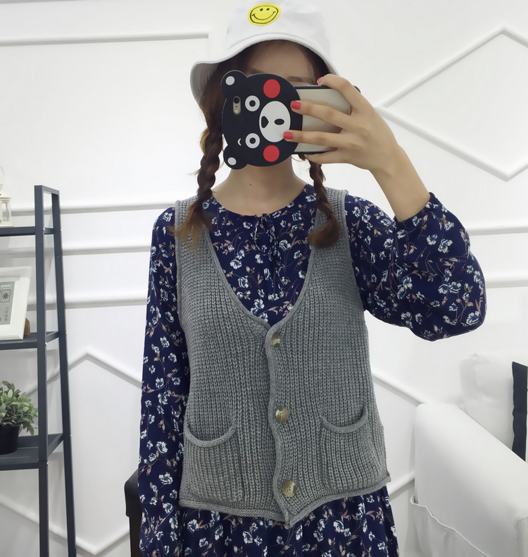 韓版寬松v領外搭背心女裝馬甲上衣秋裝學生無袖短款針織開衫外套