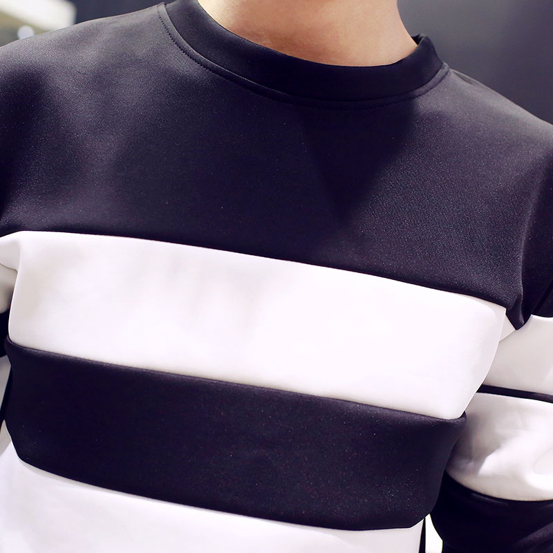秋裝新款 韓版黑白拼色情侶裝長袖顯瘦休閑女裝大碼T恤上衣潮