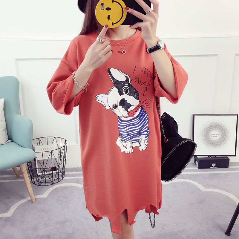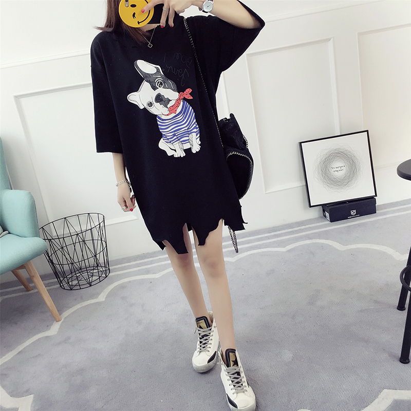 短袖t恤女中長款寬松韓版學生百搭半袖夏季上衣七分袖潮bf原宿風