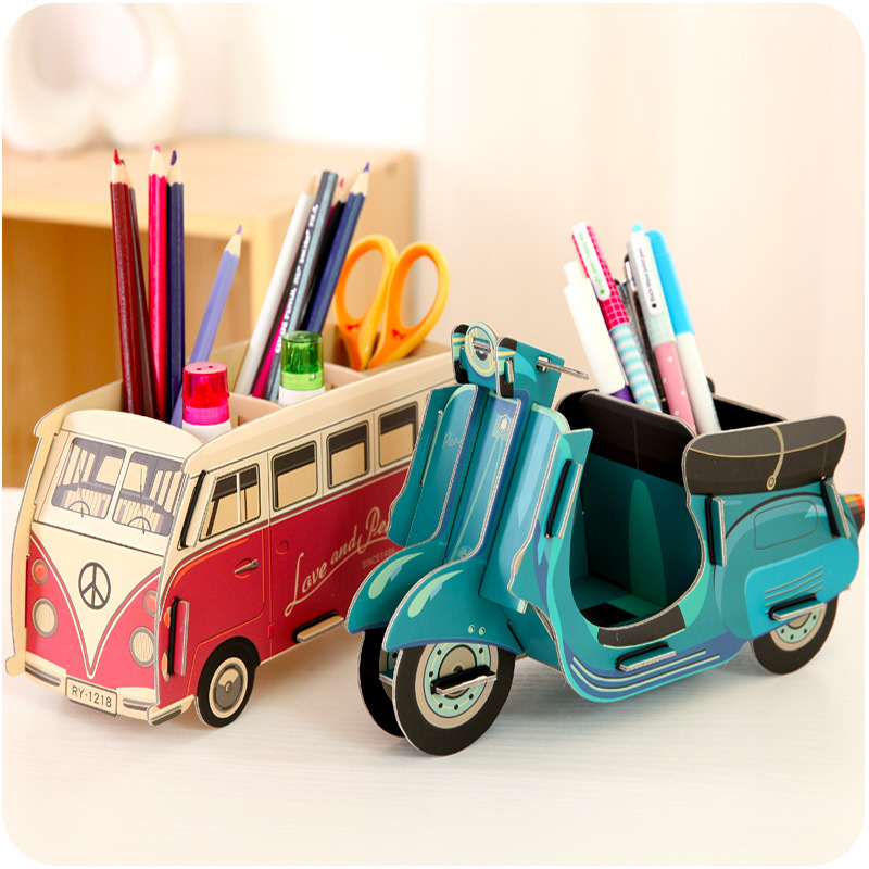 韓式創意DIY組合安裝筆盒收納盒 辦公桌桌面文具鉛筆盒收納架手工