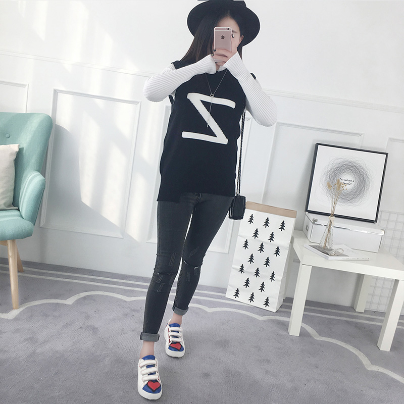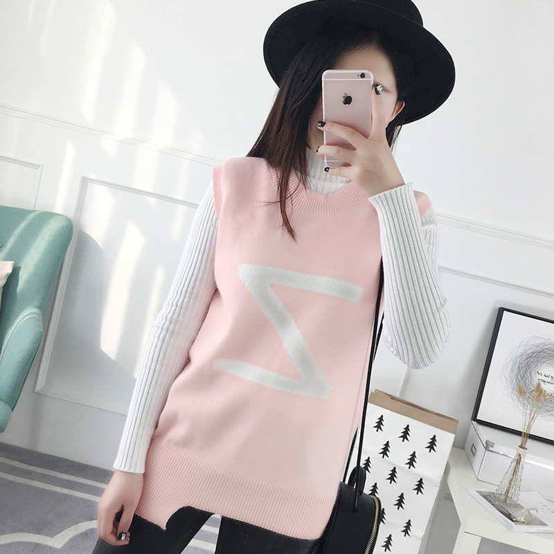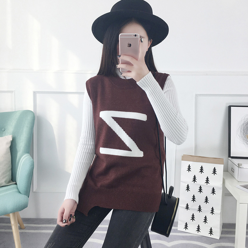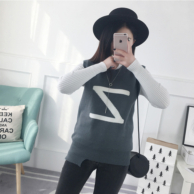 / 套頭毛衣女秋冬韓版短款圓領字母打底衫背心針織衫馬甲女裝新款潮