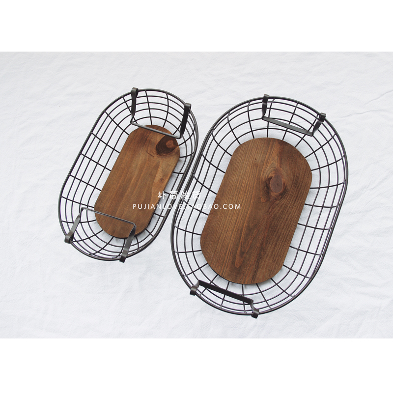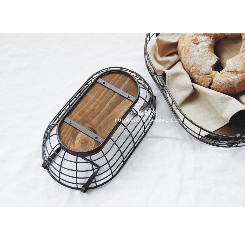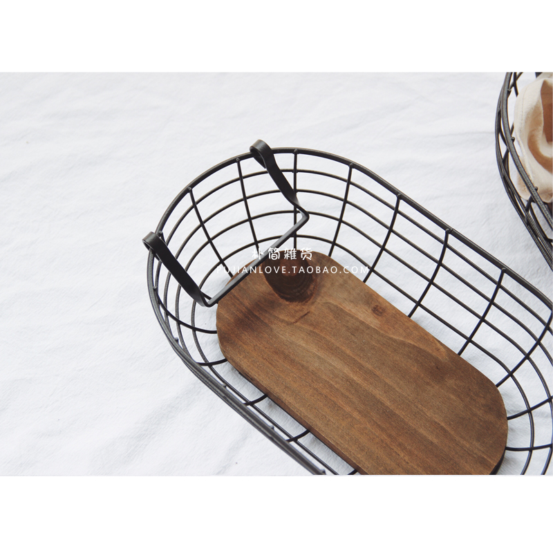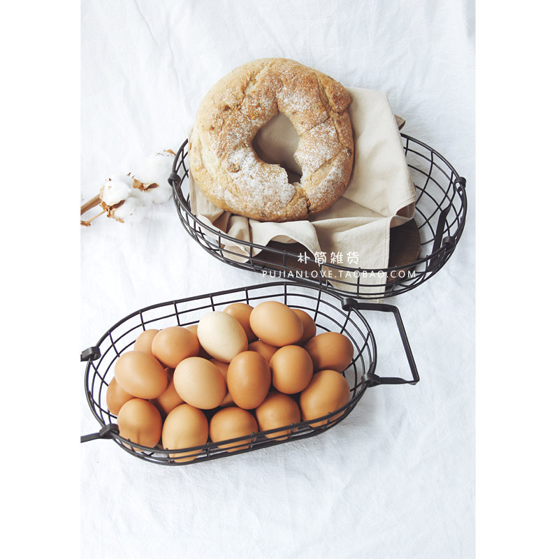 / 樸簡 日式復古鐵藝木制提手收納籃子筐橢圓雞蛋收納籃水果面包籃
