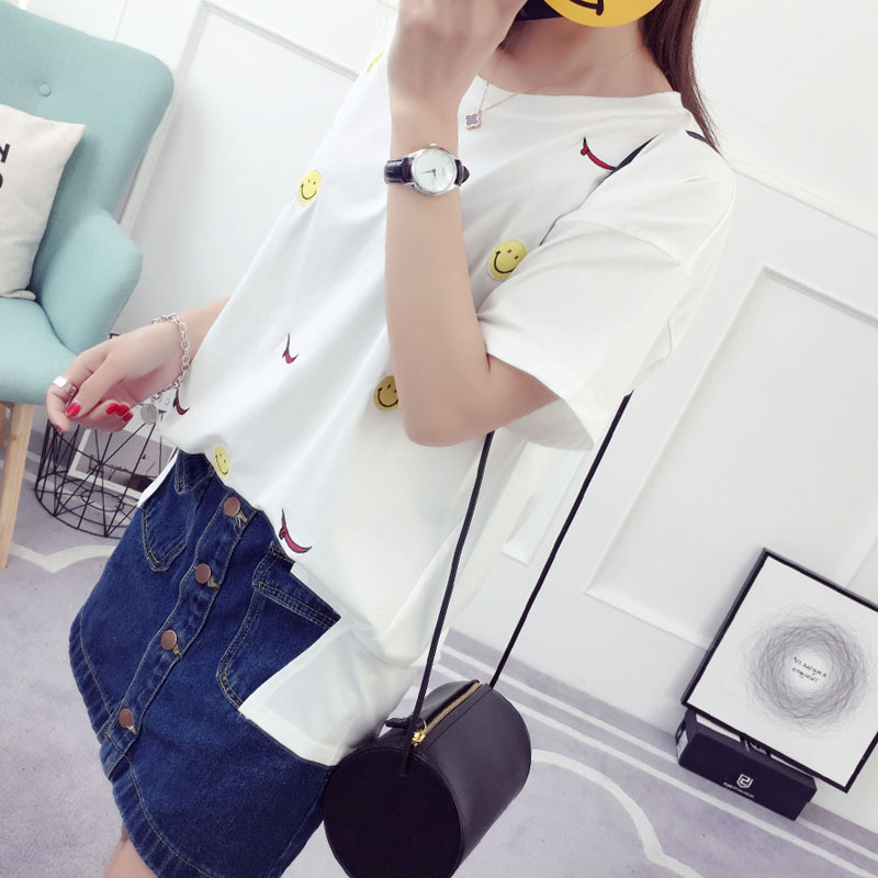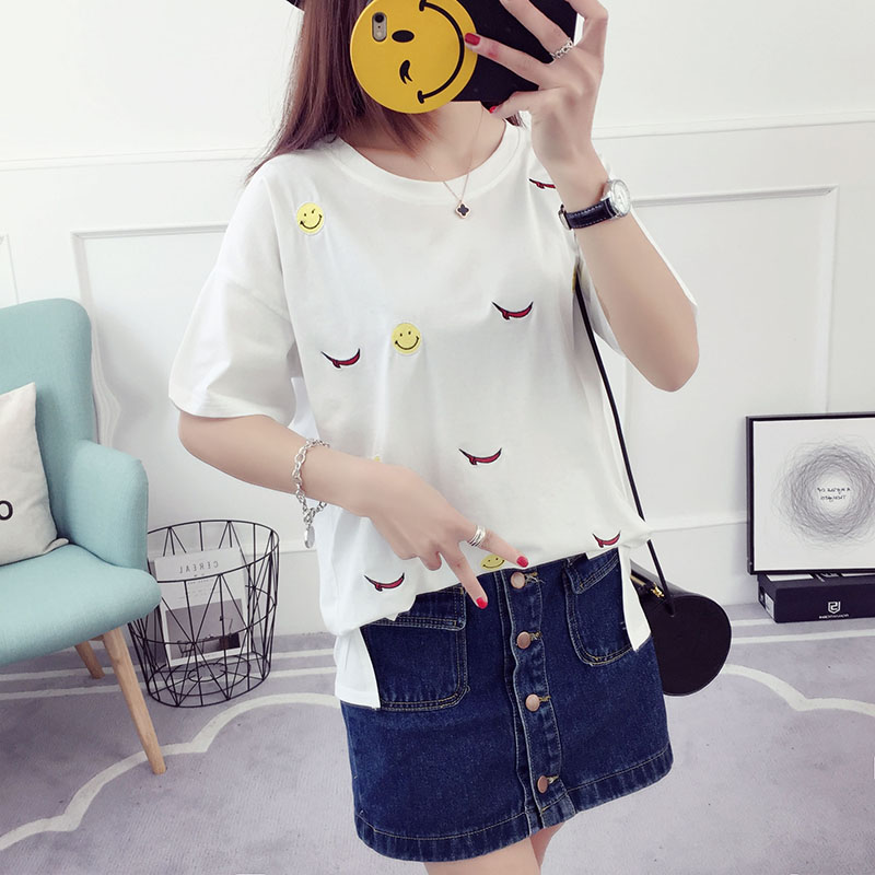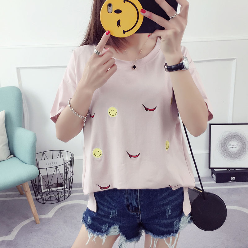 短袖t恤女新款寬松韓版學生韓范百搭韓國夏季個性刺繡衣服潮