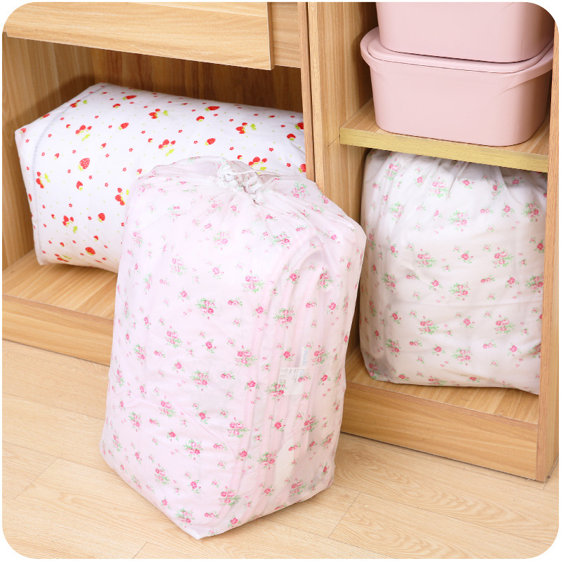 / 家居可愛印花棉被收納袋束口抽繩被子整理袋衣物加厚大容量防塵袋
