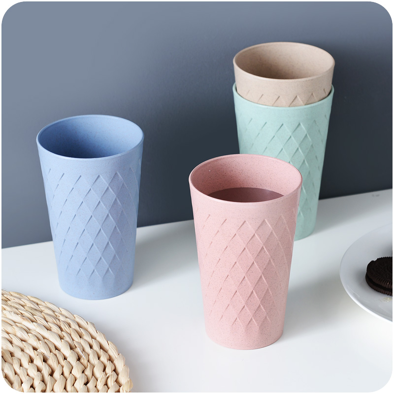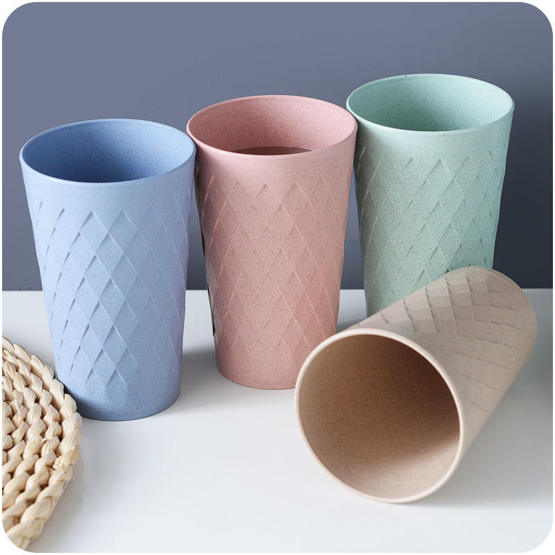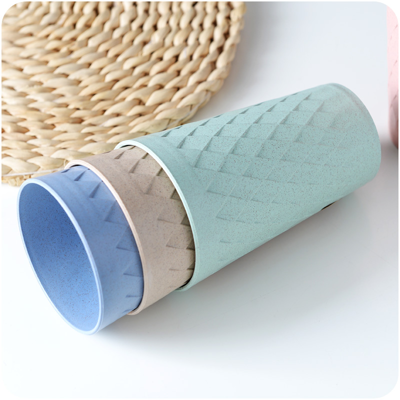 環保稈色菱形刷牙杯漱口杯家用圓形情侶牙刷杯洗漱杯牙缸男女水杯